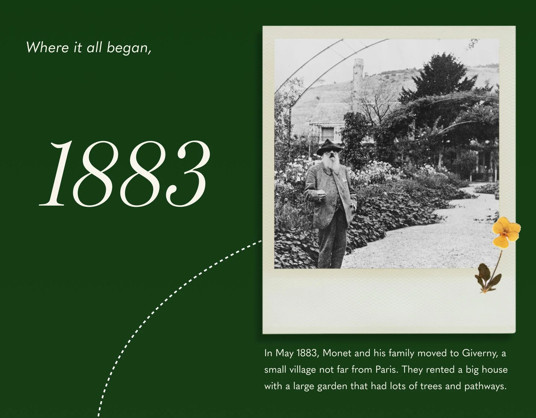 Giverny’s Garden, a museum of Claude Monet’s home. Through visual storytelling, take a peek into the history of Monet’s garden. This landing page invites guests into a world of color and a moment of peace.
